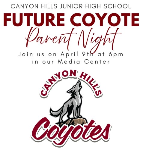 Dear Parents and Guardians,Just a reminder, to join us tomorrow, April 9, for our upcoming Future Coyote Night at Canyon Hills Junior High School. This special evening is designed for parents and g...