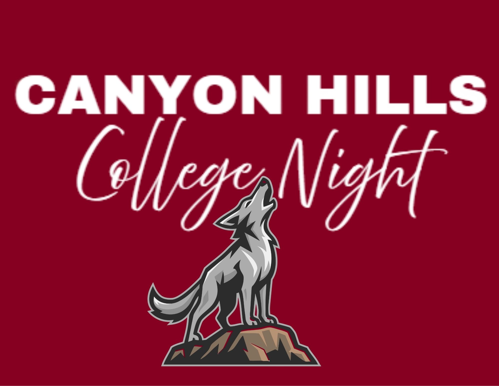 Canyon Hills families,We warmly invite you to our 2026 College Night on Wednesday, May 6th from 6:00pm to 8:00pm taking place in the Canyon Hills Media Center. We will have a student and staff pane...